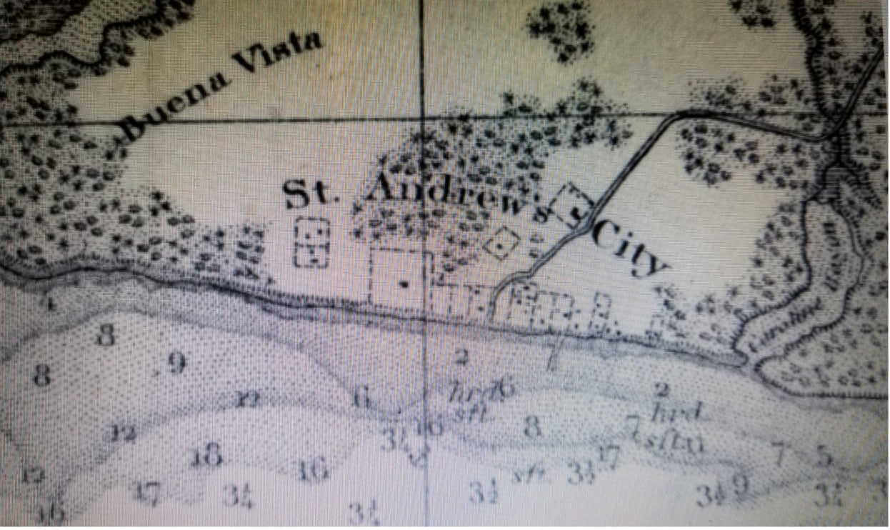 In 1845, the town was referred to as “St. Andrews” by the post office. The geodetic survey of 1855 (the first official survey) showed the town as “St. Andrews City,” and the bay was called “St. Andrews Bay.” In 1902, the post office accidentally left the “s” off and never corrected it.